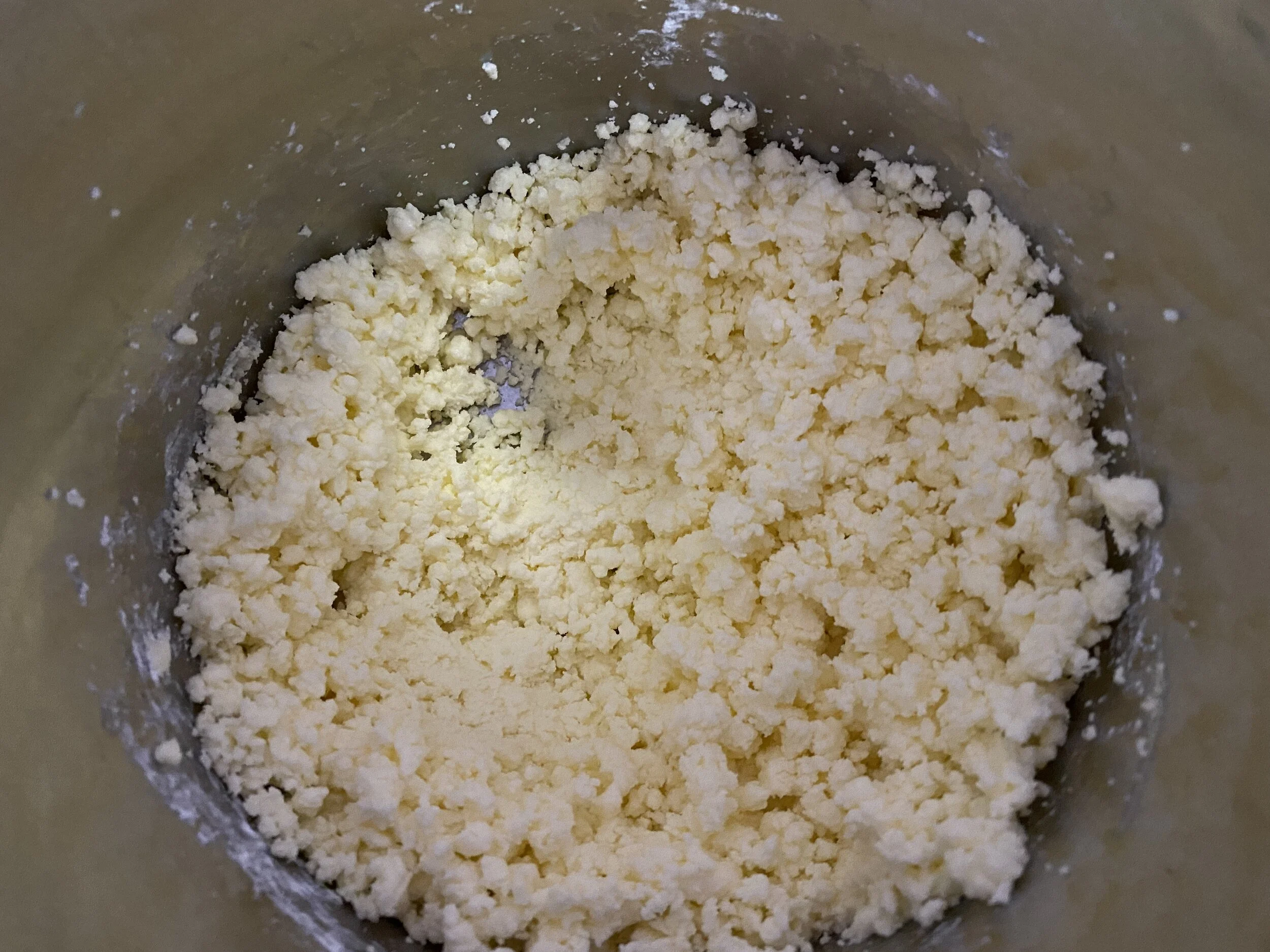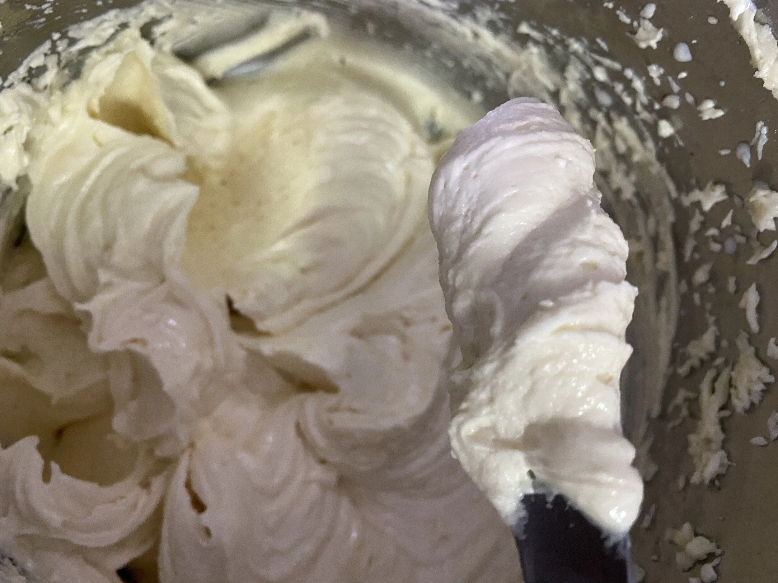 4. Cream the butter and sugar by adding the sugar a bit at a time. Once about 3/4th of the sugar is added, you will notice the texture will start getting clumpy, almost like clumps of dirt. Don’t worry and continue to add the sugar as the milk will thin it out.